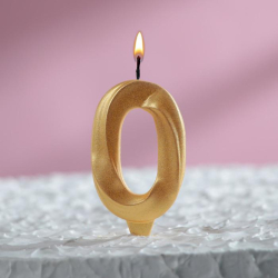 Свеча в торт "Грань", цифра "0", золотой металлик