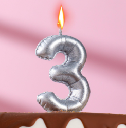 Свеча в торт "Шары", цифра 3, серебро, 7 см