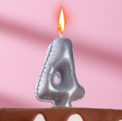 Свеча в торт "Шары", цифра 4, серебро, 7 см