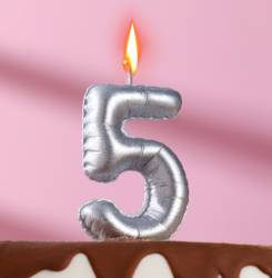 Свеча в торт "Шары", цифра 5, серебро, 7 см