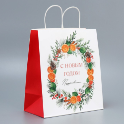Пакет подарочный крафтовый «Поздравляю», 32 × 28 × 15 см