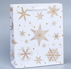 Пакет подарочный «Снежинки», 21 × 25 × 8 см